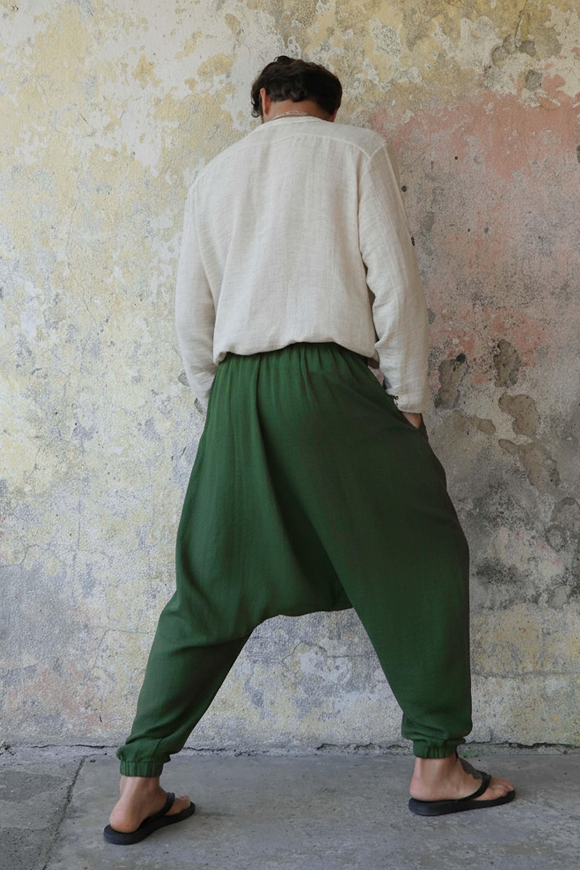 TRIBAL Men's Organic Gauze Cotton Harem Pants (Dark Green, Sage Green)