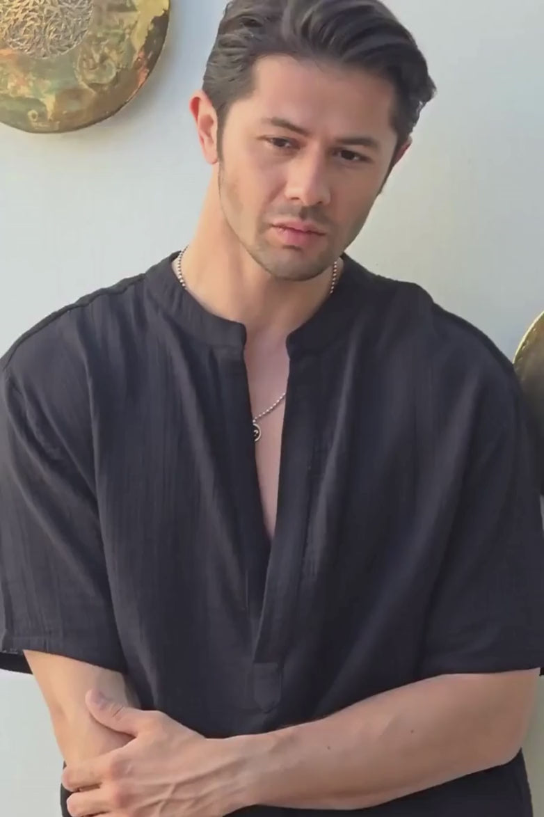 Featuring a mandarin collar with a split neck, this stylish casual shirt adds a touch of sophistication to its relaxed design. The short sleeves and loose fit make it ideal for casual outings, travel, music festivals, and casual night outs. Perfect for summer and warmer days of spring and fall, this breathable cotton shirt is designed to keep you cool and comfortable.
