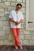 Pair the PELEUS White Shirt with linen or hemp pants for a naturally cool look.